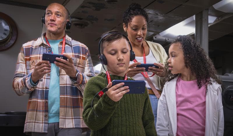 The full brief for HMS Belfast’s multimedia guide was as follows: A main multimedia guide, a family friendly tour, a BSL and audio descriptive version, translation and the hardware and software to support the smooth running of the service.